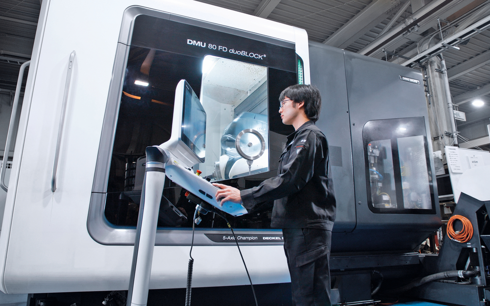 En el pasado, NAKAZATO GEAR INDUSTRY empleaba para la producción de ruedas dentadas una combinación de centros de torneado, centros de mecanizado y máquinas especiales para el tallado de herramientas. Los procesos de mecanizado estaban distribuidos por diversas máquinas, de manera que resultaba necesario un cambio de configuración y herramientas especiales para cada forma de engranaje. NAKAZATO GEAR INDUSTRY invirtió en una DMU 80 FD duoBLOCK con el objetivo de aumentar la productividad. El centro de fresado-torneado de 5 ejes de DMG MORI dispone además del exclusivo ciclo de tecnología de gearMILL de DMG MORI.