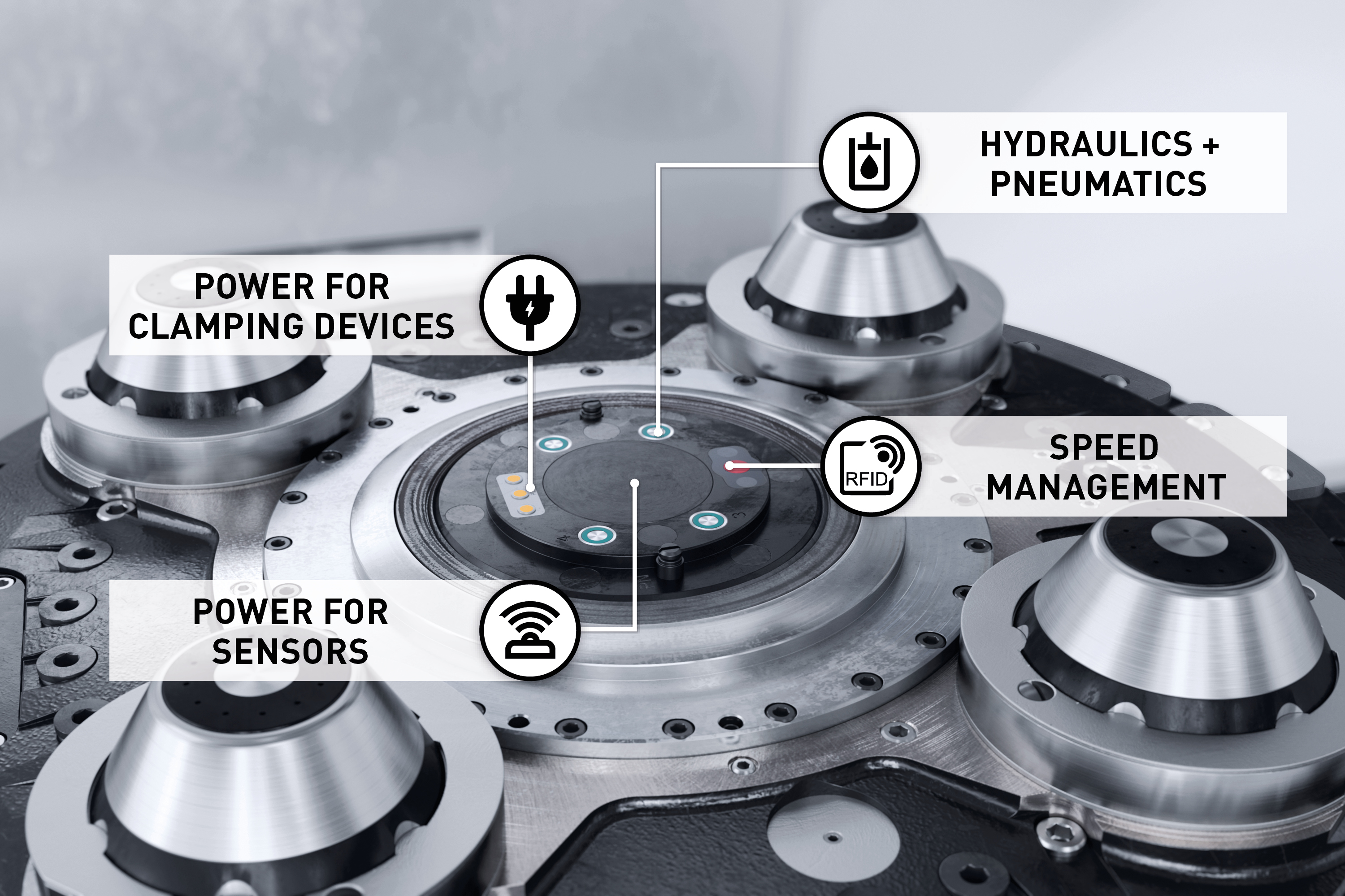 Interface for flexibility and process optimization – the E-Pallet from DMG MORI expands the classic media transfer with power for sensor technology or for all-electric clamping devices.