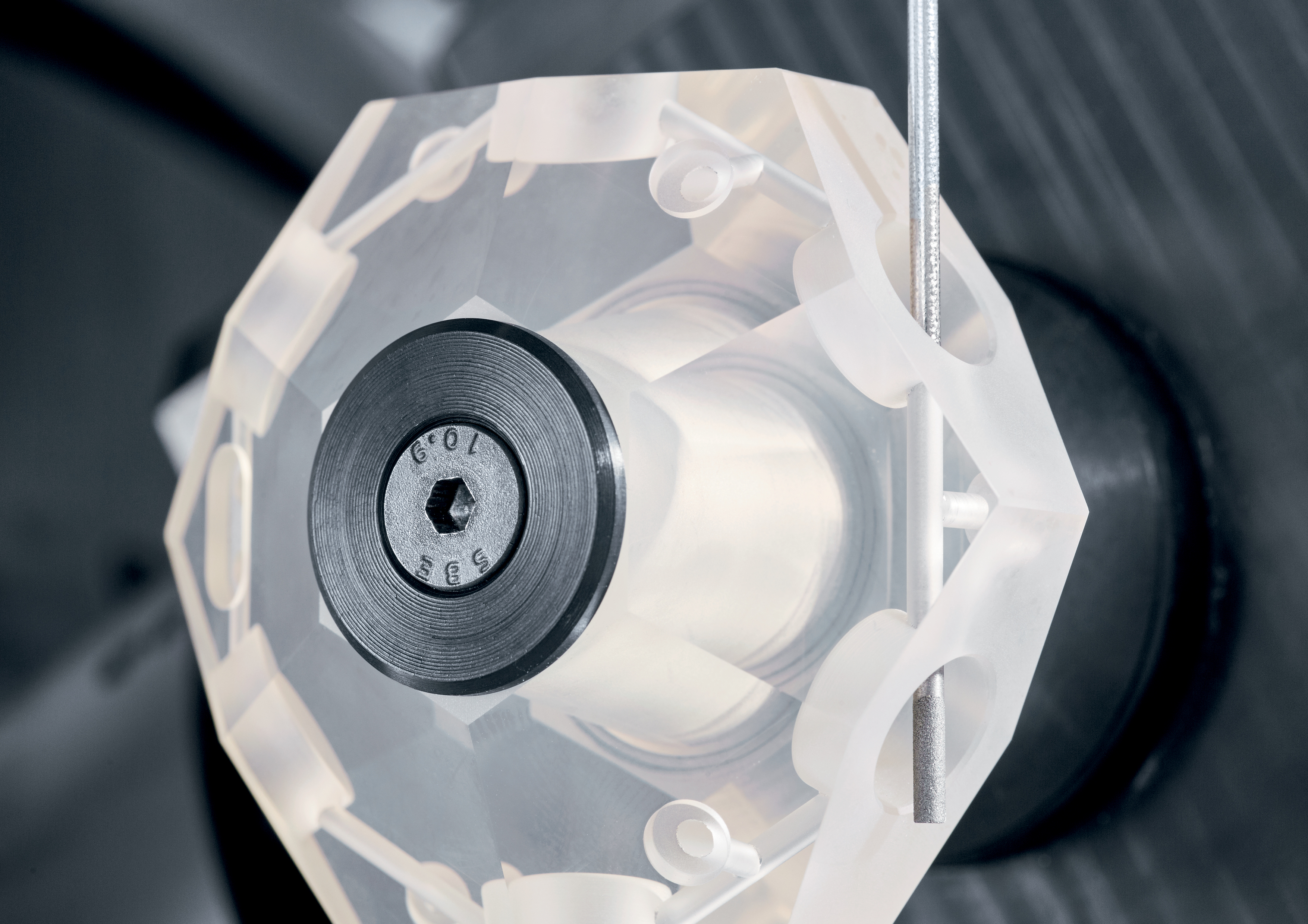 The wheel magazine of the DMU 20 linear 3rd generation offers space for 26 tools for a high level of machining versatility, while an optional chain magazine has 60 tool slots - regardless of the HSK interface. The maximum tool size is ø 70 mm x 200 mm in length and the weight is 1 kg. An optimized tool flap with chip flushing minimizes the risk of contamination in the changer. In order to be able to use even small tools at optimum cutting speeds, the DMU 20 linear 3rd generation has a spindle with 42,000 rpm with HSK-32 or HSK-40 interface as standard. An HSK-32 spindle with 60,000 rpm is available as an option. In the case of the ULTRASONIC 20 linear 3. Generation, the spindle has an ULTRASONIC actuator, which enables ultrasonic-supported grinding. The spindles have oil-air lubrication. For demanding workpieces with longer machining times, we recommend using the HSK40 CSC spindle with shaft cooling. A permanently grease-lubricated spindle is available for machining sensitive components (e.g. in medical technology) that must not be contaminated with oil or emulsion.