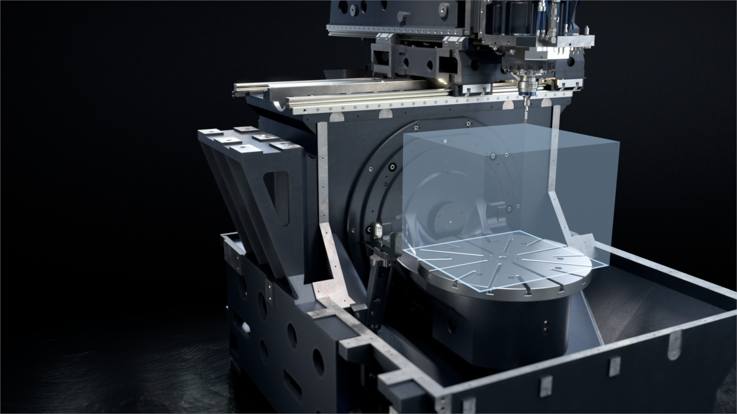 Mesa giratoria con entre -35° y +110° y eje C de accionamiento directo con máx. 300 rpm y piezas de trabajo de hasta 300 kg de peso